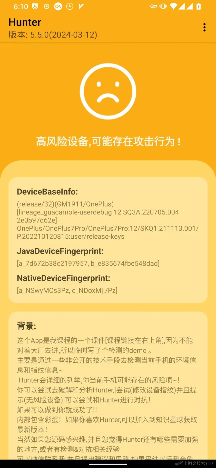 没有检测到root和lsposed,这几个就不用管了,一般APP都懒得检测这些。