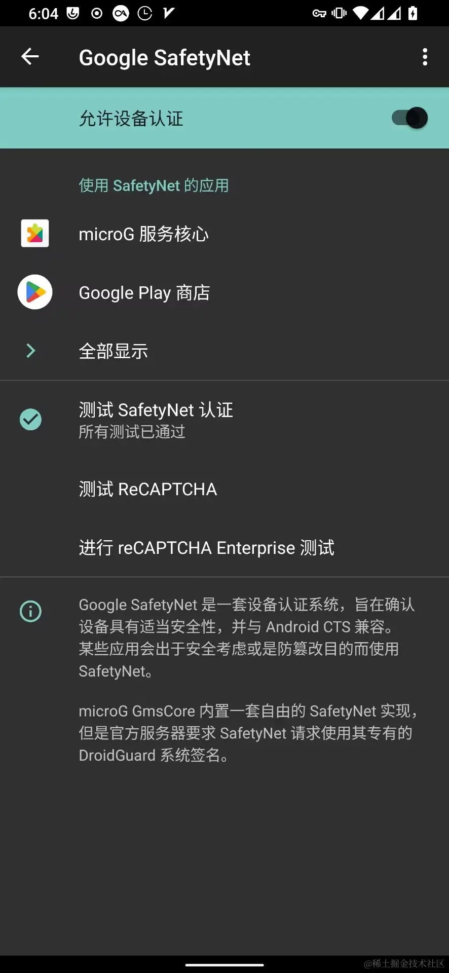 然后在microg设置里添加谷歌账号->注册设备->开启云端消息推送->开启SafetyNet, (这些过程都需要科学)