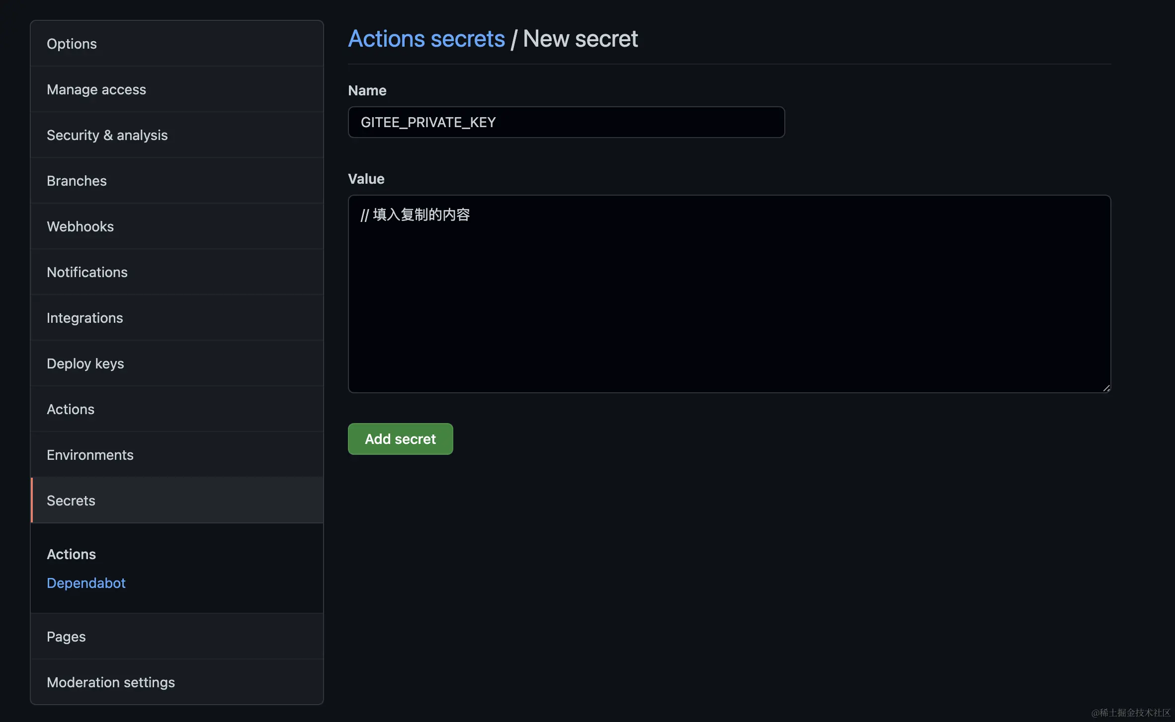 dst_key: ${{ secrets.GITEE_PRIVATE_KEY }}