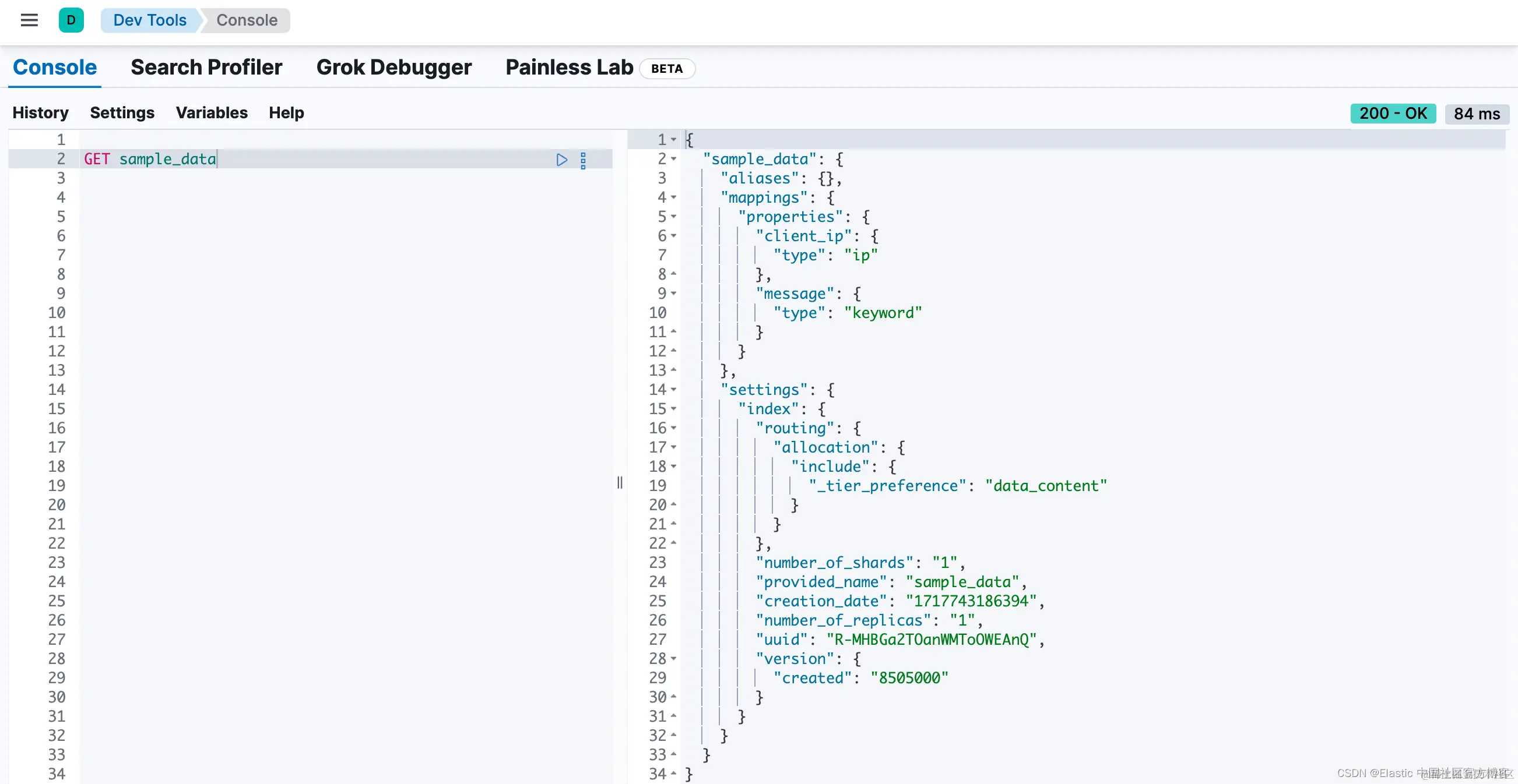 在为示例数据集建立索引之前,让我们使用正确的映射创建一个名为 sample_data 的索引。