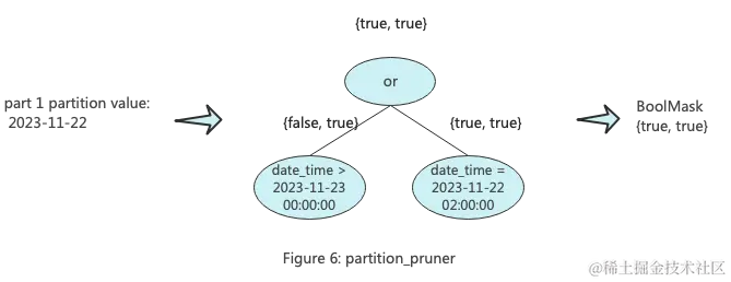 另一个被称为,主要用于过滤分区。partition_pruner的key为分区表达式组成的列,比如分区键为toDate(date_time),那么它的key为toDate(date_time),后续进行过滤的时候传入的是分区对应的值组成的范围矩阵。下图展示了partition_pruner的工作原理。