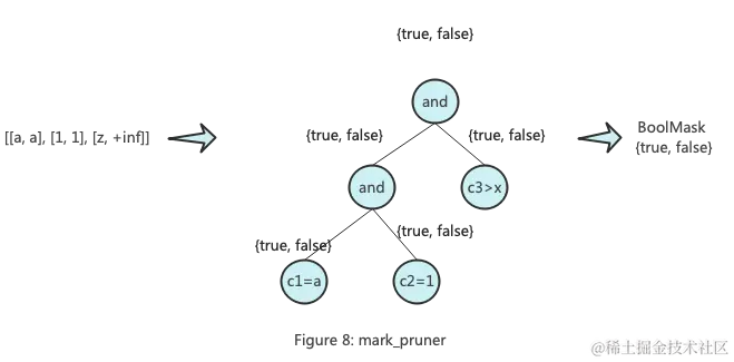 满足过滤条件分三种情况,1范围矩阵中的数据全部满足过滤条件,2部分满足,3全部不满足。为表示以上三个语义ClickHouse设置了一个数据结构 {can_be_true, can_be_false},它的{true, false}、{true, true}、{false, true}三个值对应以上三种语义。
