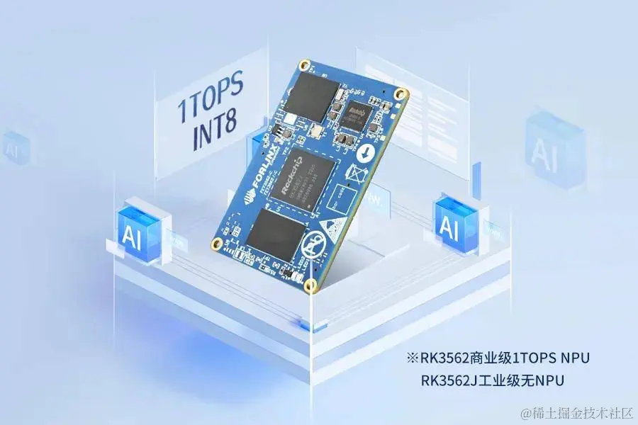 RK3562处理器内置1TOPS算力NPU,支持INT4/ INT8/ INT16/ FP16数据类型的混合操作,与TensorFlow、MXNet、PyTorch和Caffe等一系列框架具有强大的兼容性,可以轻松转换网络模型,为您的AI应用提供更多选择(注:RK3562商业级1TOPS NPU,RK3562J工业级无NPU)。