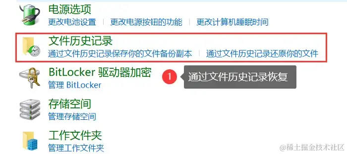 如果电脑曾开启了文件历史备份记录功能,那么尝试使用该功能恢复丢失图片也是比较快速的方法。