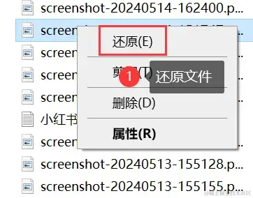 步骤3:右键单击选中的照片,选择【还原】选项,照片将被恢复到其原始位置。