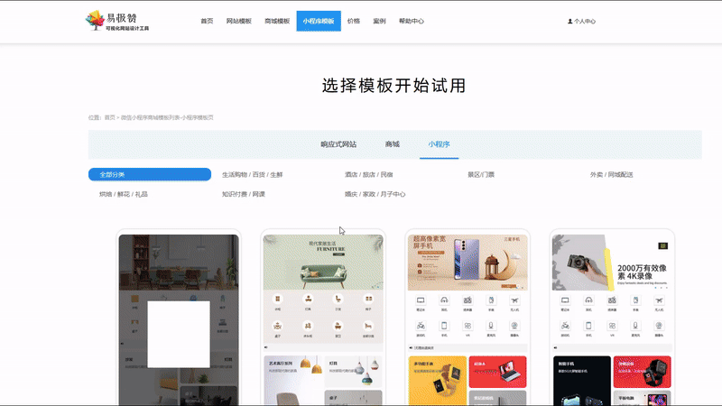 易极赞提供超80套小程序模板案例,开箱即用,在线编辑