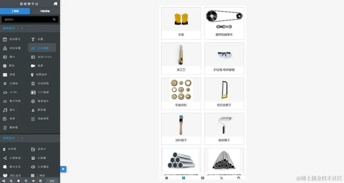 step2, 一键生成五金店小程序商城,进入可视化编辑器可以对站点文案图片进行修改
