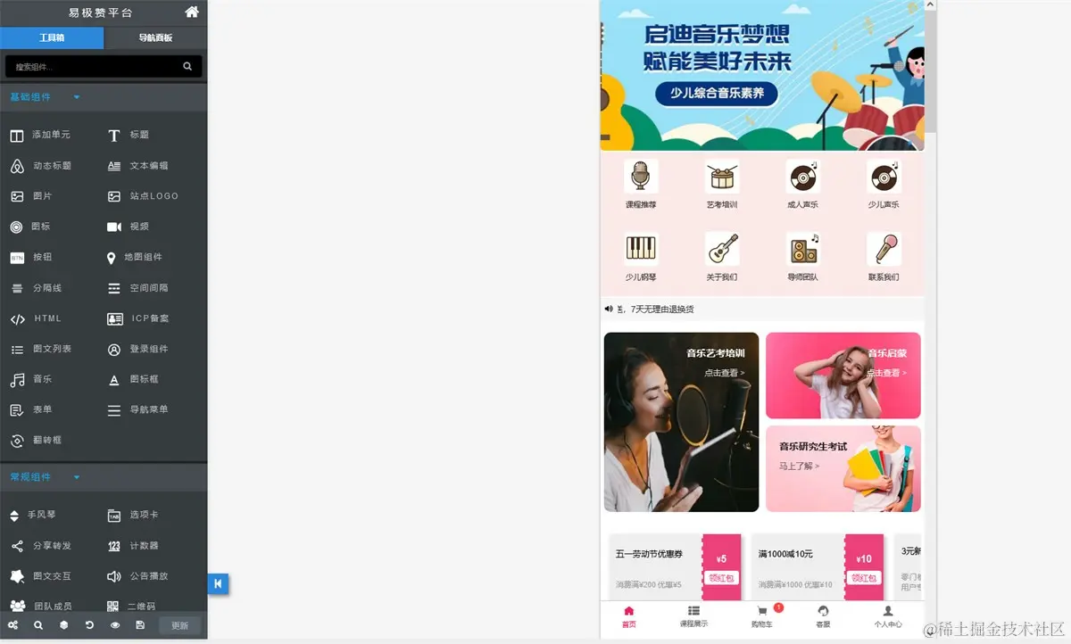 step2, 一键生成教育培训小程序商城,进入可视化编辑器可以对站点文案图片进行修改