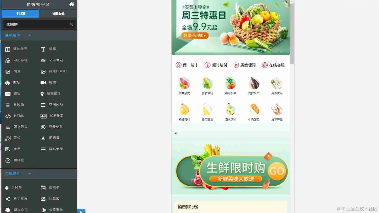 step3, 在线编辑修改站点内容,设计完成后,点击发布这样一个日用百货小程序就制作完成了