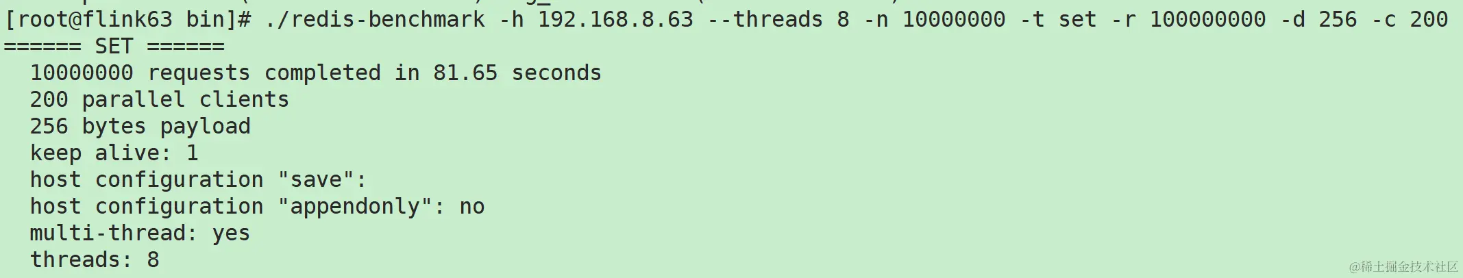 redis-benchmark -h 192.168.8.63 -p 6379 -t set -n 32000000 -d 256