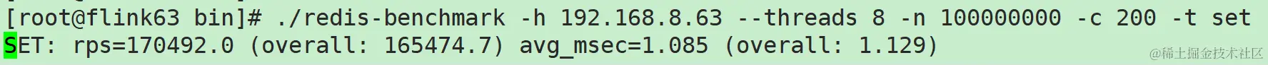 ./redis-benchmark -h 192.168.8.63 --threads 8 -n 100000000 -c 200 -t set