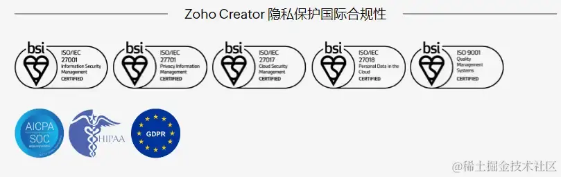 Zoho Creator低代码平台内置了安全措施和合规性工具,确保开发过程中的数据安全,符合行业标准和法规要求,这对于保障整个SDLC的安全性和合规性至关重要。