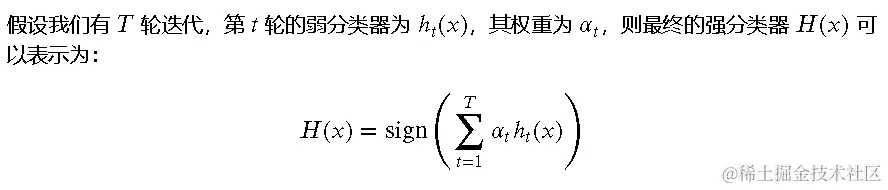 H = alpha_1 * weak_classifier_1(X) + alpha_2 * weak_classifier_2(X)