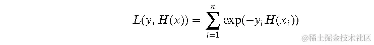 Adaboost 使用指数损失函数来衡量分类错误的程度。损失函数的形式为: