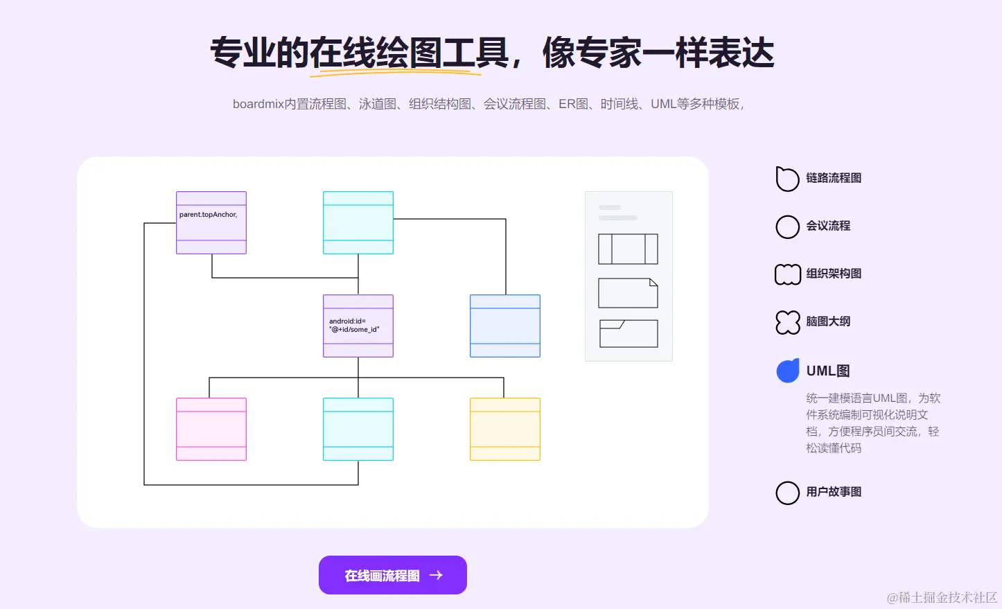 无论是独自工作,还是与远在天边的 10 人团队合作,boardmix 都可以帮助你创建出色的 UML 图表,可视化你的工作流程,促进协作和沟通,boardmix 的用户友好界面使图表绘制对每个人来说都能快速上手。