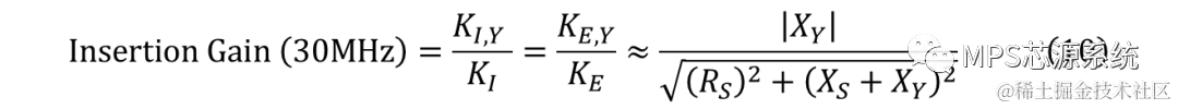 根据图3的阻抗曲线,30MHz处XA ≫ RA, XS, RS。因此,比较KI,Y与KI(或KE,Y与KE)可知,Y电容的插入损耗如式(10)所示: