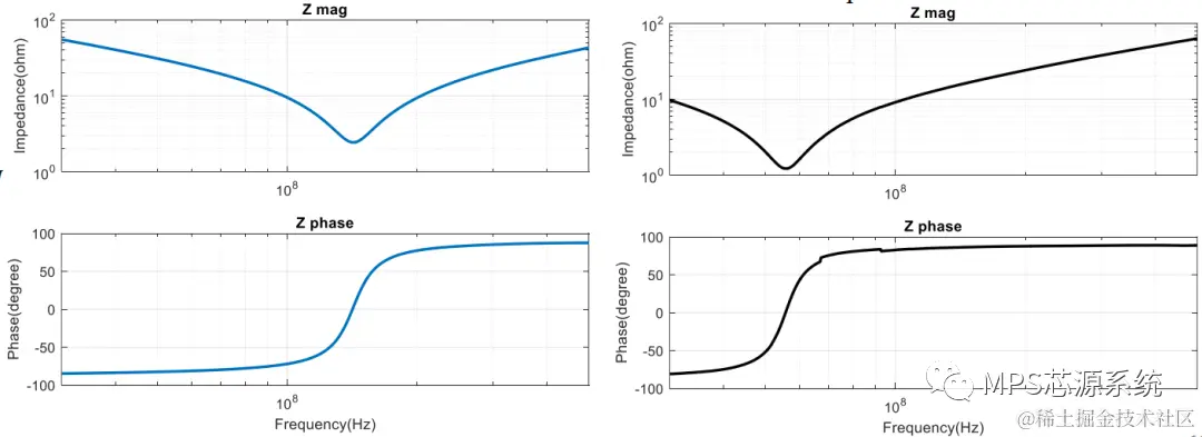 图9 Y电容的阻抗:左图为100pF,右图为470pF