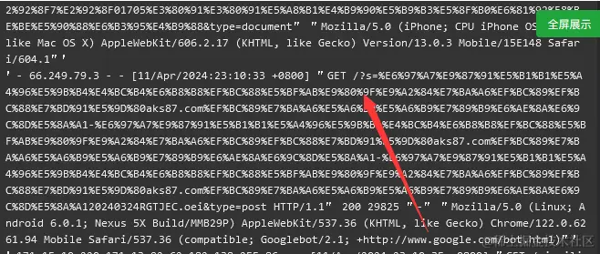 通过访问域名后,发现请求来自搜索,而且是一些非法关键词请求。