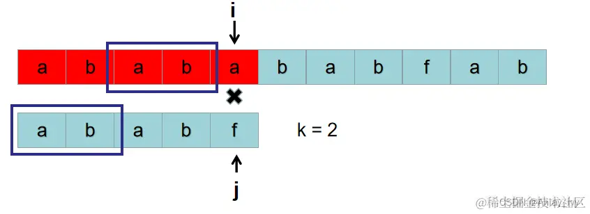 S[i-k-x ~ i-1]与短字符串前 k-x 个字符P[0 ~ k+x-1]不相同。 - 长字符串从 i-k+x 到第 i-1 的字符