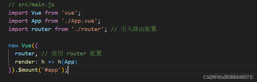 接下来,在你的 Vue 应用的入口文件(通常是 main.js 或 main.ts)中,导入并使用这个路由实例。