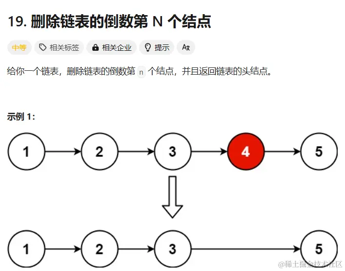 遍历链表得到链表长度length,通过 length - n + 1 得到要删除节点的前一节点