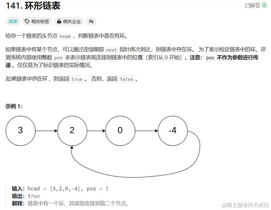- 如果链表没有环形,最后会退出while循环,返回false;如果有环形,则会执行slow = slow.next;