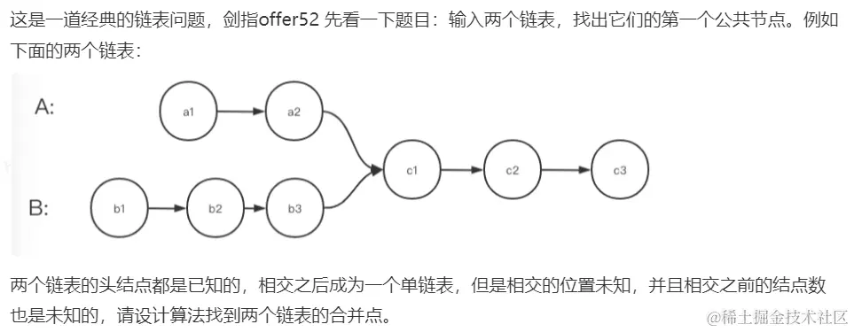 方法:可以将两个链表存到某个数据结构中,如hashMap、hashSet、栈中,然后依次比较