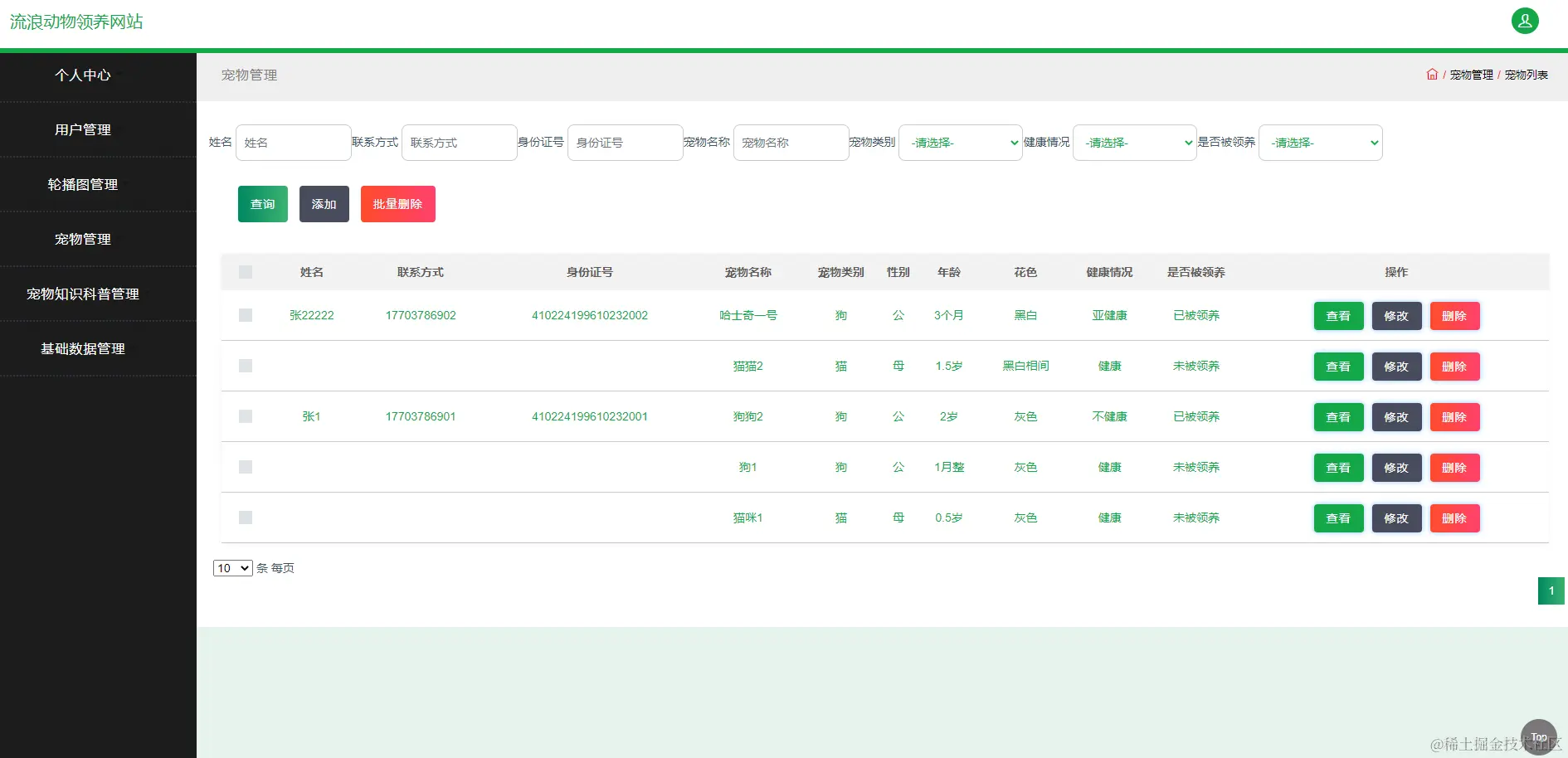 图5.3 宠物管理页面