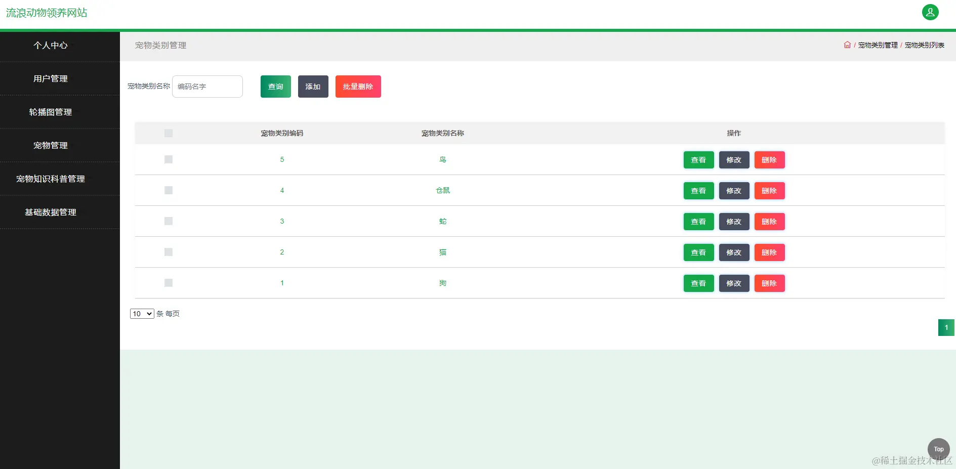 图5.4 宠物类型管理页面