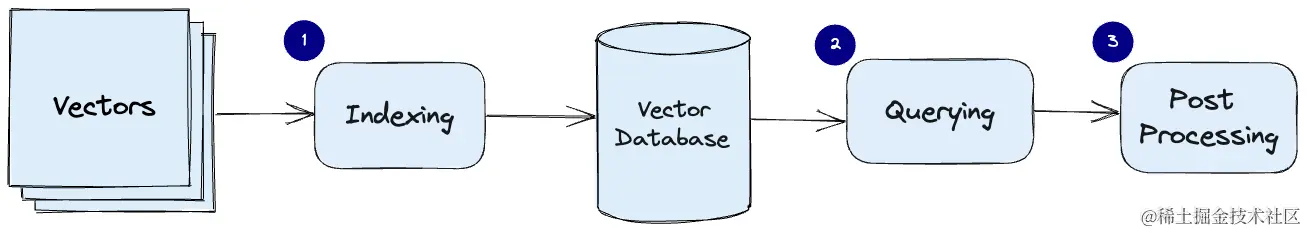 向量数据库的常见的工作管道: