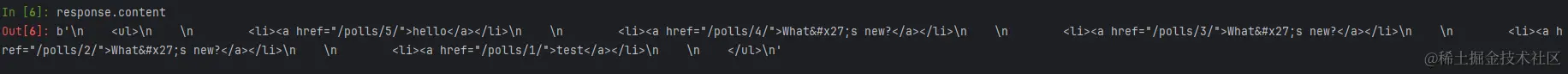 这一步注意:polls是我加的命名空间,在urls里面类似这种 app_name = 'polls' ,得到下面返回结果: