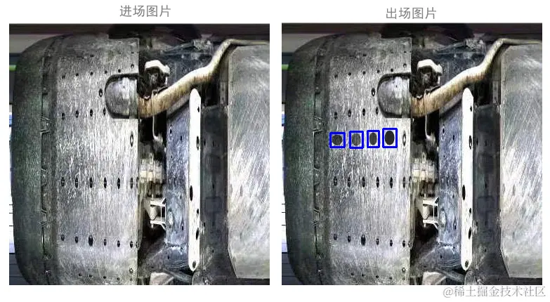 就比如以下案例是在工业生产中的实践。当机械设备进行作业前拍摄一张图片,作业完毕后再进行一张图片。对比两者的区别,可以排查出设备是否有变化。