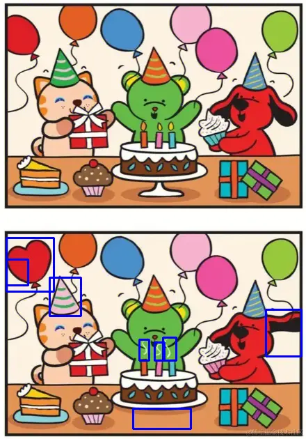 玩法就是上下两张图片存在不同,让你对比并找出差异点。但是现在来说,这类游戏可以用算法来实现了。现在浮躁的人们,连玩儿都不认真对待了,一心想着那个名次排行榜。