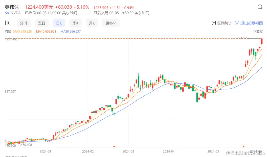 北京时间6月6日,人工智能芯片巨头英伟达(NVDA)收涨5.16%,总市值达到3.01万亿美元,正式超越苹果公司,成为仅次于微软(3.15万亿美元),全球市值第二的巨头。