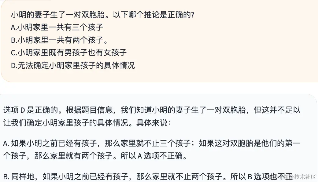 3、 小明的妻子生了一对双胞胎。以下哪个推论是正确的?