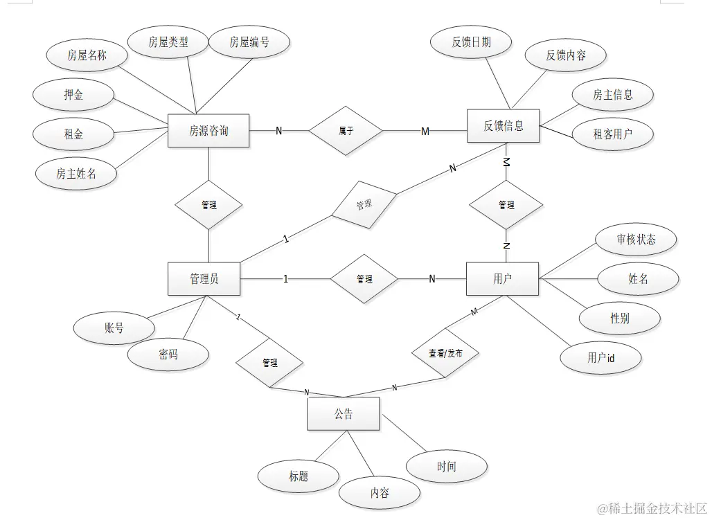 线上租房平台小程序实体E-R图,如图4.5所示。
