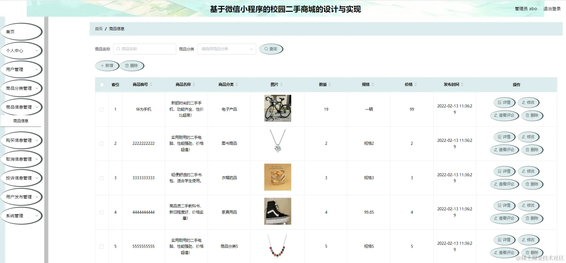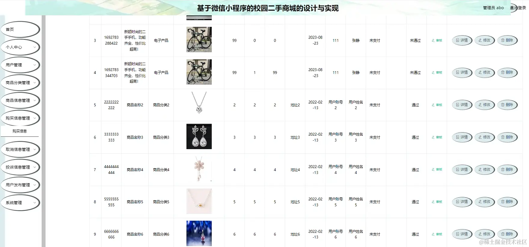 在校园二手商城小程序的实现下,管理人员能够充分发挥信息化处理的优势,提高日常管理的处理速率。用户一方可以更好的享受信息化处理带来的便利。系统运行能够稳定且高效。并且人机友好程度能够显著提升。
