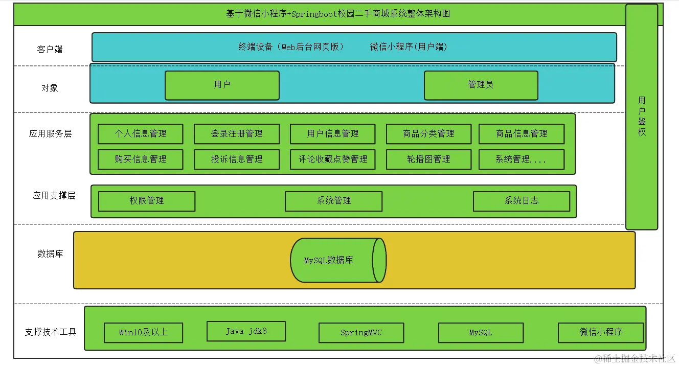 在当今社会的高速发展过程中,产生的劳动力越来越大,提高人们的生活水平和质量,尤其计算机科技的进步,数据和信息以人兴化为本的目的,给人们提供优质的服务,其中网上购买二手商品尤其突出,使我们的购物方式发生巨大的改变。而线上购物,不仅需要在硬件上为人们提供服务网上购物,而且还可以省去许多时间去实体店选择二手商品,既可以吸引用户流量好,还可以购买二手商品,更要在软件上为需要服务的人提供必要的便利。于是校园二手商城小程序便应运而生。