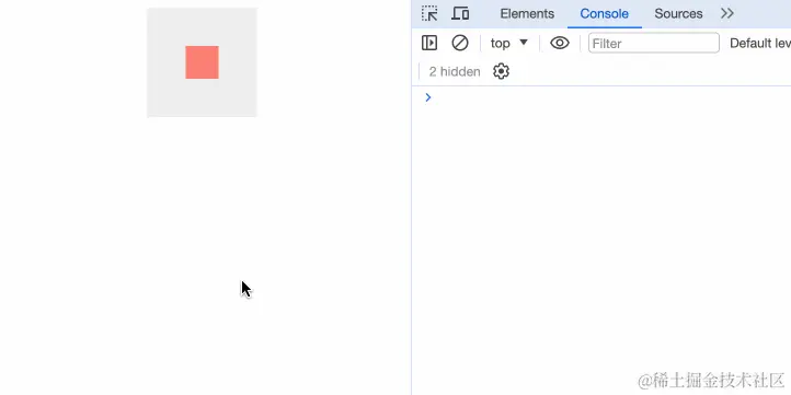当我们点击红色区域时,不会打印任何信息,点击红色区域以外,打印出信息。