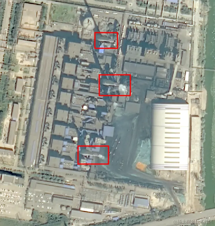 结合google影像,红框处无烟囱顶部空心特征,不是烟囱: