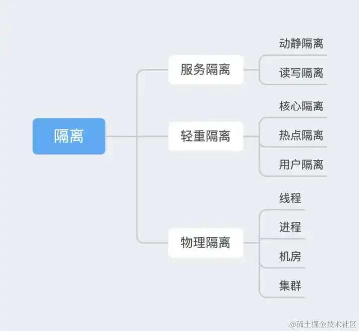 隔离 策略,如动静隔离、读写隔离和机房隔离,通过物理或逻辑上分离资源和请求,减少单点故障的影响
