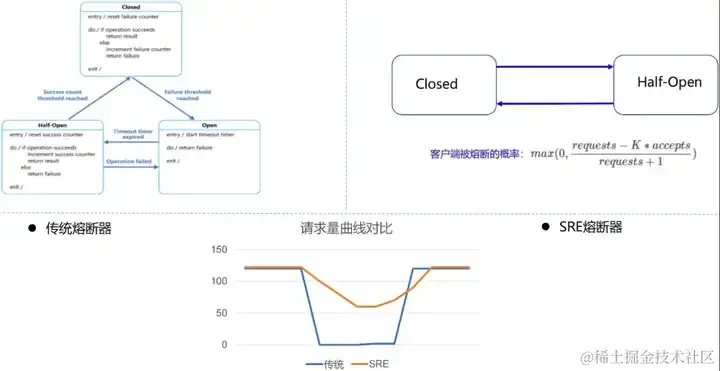熔断 机制,包括传统熔断器和 Google SRE 模型,作为防止系统过载的重要工具