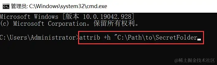 步骤2:使用 【attrib】命令来修改文件夹属性。例如,要隐藏名为【SecretFolder】的文件夹,可以输入以下命令:【attrib +h "C:\Path\to\SecretFolder】(请将C:\Path\to\SecretFolder替换为您的文件夹实际路径);