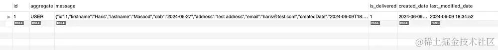 正如我们从上面的截图中看到的,用户和发件箱表都被填充了。此外,发件箱表的is_delivered列被设置为1,这进一步确认了我们的消息被正确发布。