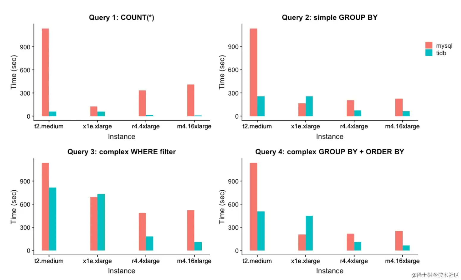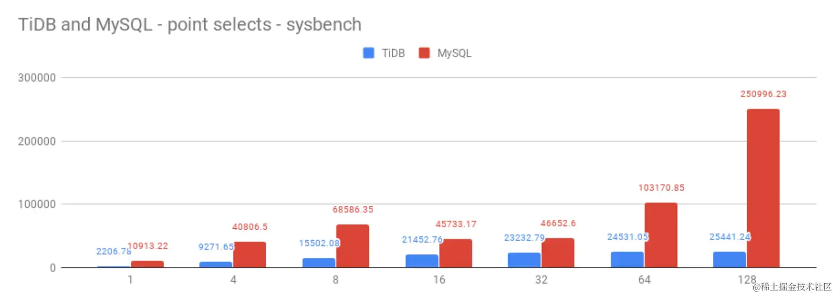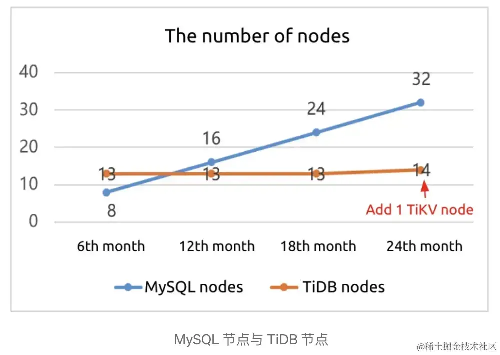 - MySQL使用32 个节点,而 TiDB 只有 14 个
