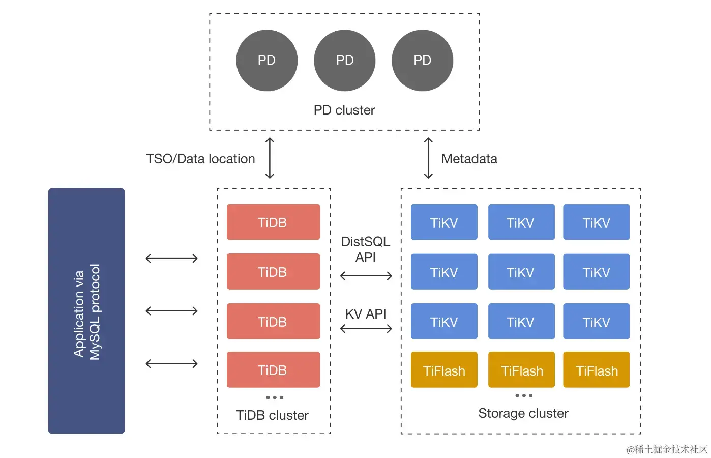 - 存储集群的元信息(某个Key存储在那个TiKV节点);