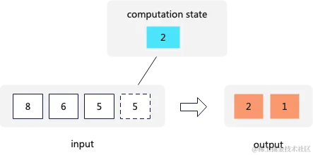 Transform中保留最后一个输入的数据作为状态,对于每个输入的新数据如果跟保留的状态相同,那么忽略,如果不同则将上一个状态输出给上一个算子,然后保留当前的数据最为状态。这种算法对于在整个stream内部全局去重时间和空间复杂度都有极大的降低。