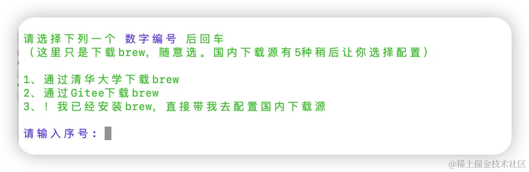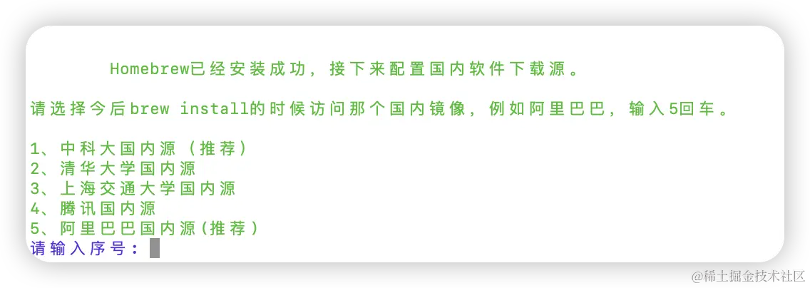 安装成功 但还需要重启终端 或者 运行 source /Users/你的路径/.zprofile 否则国内地址无法生效。