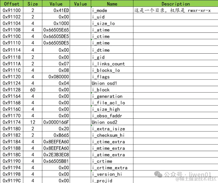 通过inode 上i_block信息我们可以知道,根目录inode是将逻辑块0开始的1个block映射到物理块号0x1091开始的1个block