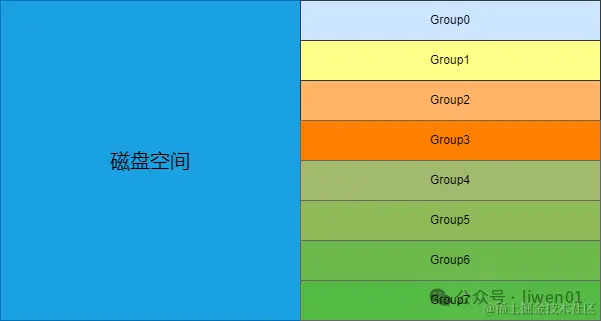 从上面dumpe2fs的数据上我们可以看出,一个1GB大小的空间,ext4 文件系统将它分隔成了0~7的8个Group。